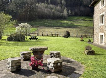La casa se encuentra formando un conjunto con una panera milenaria y un pajar todo bordeado de un muro de piedra y situado en una finca donde disfrutar al aire libre en plena naturaleza con aparcamiento propio y jardín de 5000m2 con barbacoas y mobiliario de jardín.
